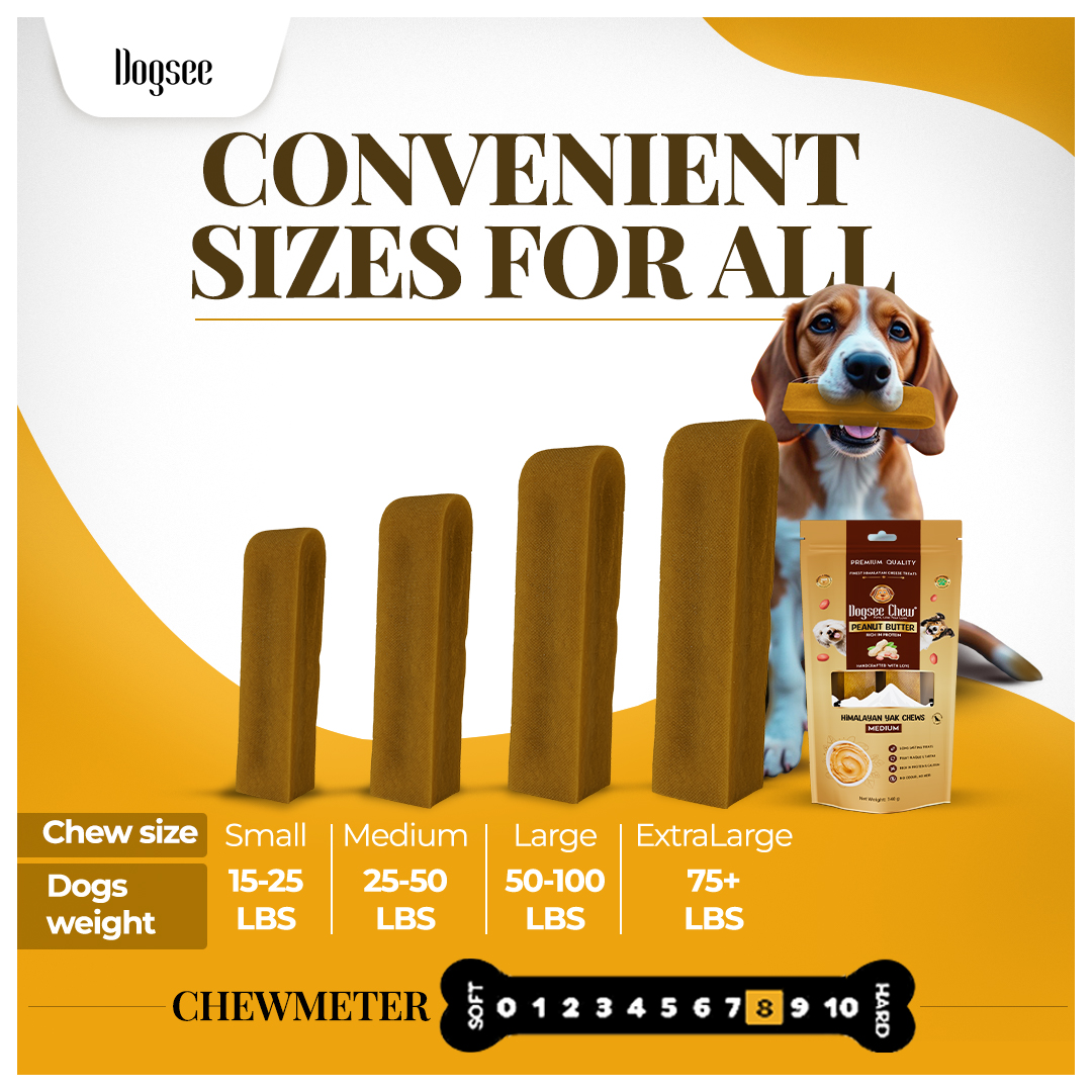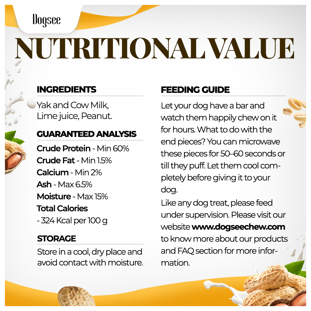 Great for Oral Hygiene - The hard texture of Dogsee Peanut Butter Yak cheese chews keep your dog’s dental health in check. They help freshen breath, remove plaque & tartar, and strengthen teeth & gums.